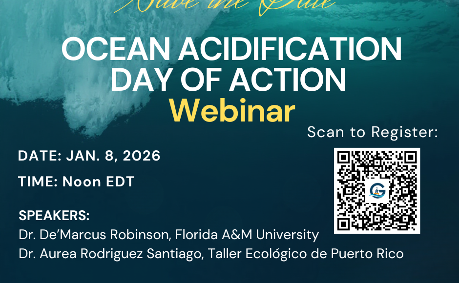 The Coastal Acidification Networks (CANs) of the Mid-Atlantic, Gulf of America, Southeast and Caribbean hosted a webinar in recognition of the Ocean Acidification Day of Action on Thursday, Jan. 8, 2026. Dr. Aurea Rodríguez Santiago, Founder and Director, Taller Ecológico de Puerto Rico, and Dr. De’Marcus Robinson, Postdoctoral Fellow, Florida A&M University, and the CAN coordinators delivered presentations highlighting their work and the actions they are taking to better understand and address the impacts of ocean acidification (OA). The webinar concluded with a panel discussion and Q&A, creating space for dialogue on research, community engagement and collaborative actions to advance ocean acidification awareness and solutions.